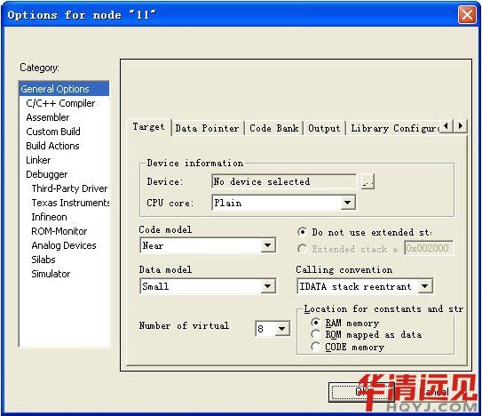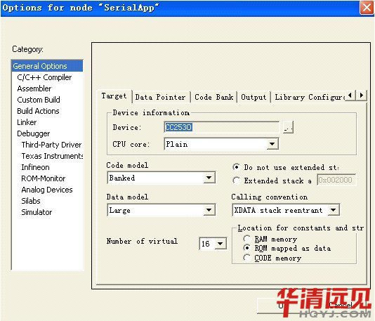 2.General Options項(xiang) 2.1 在Target 標簽下(xia),Device 欄選擇(ze)"C:\Program Files\IAR Systems\Embedded Workbench 5.3\8051\config\devices\Texas Instruments"文(wen)件夾(jia)下(xia)CC2530.i51.(根據自己的IAR安裝目錄選擇(ze))