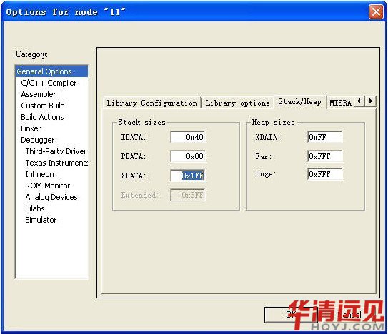 2.3、Stack/Heap 標簽,XDATA 欄內設置(zhi)為"0x1FF"。