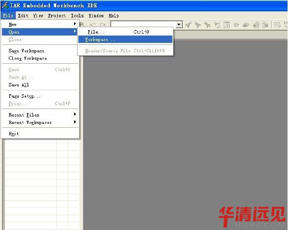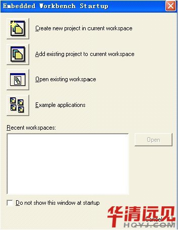 現在你(ni)(ni)可以通過(guo)在桌面的快捷方式或在"開(kai)(kai)始"按鍵中選(xuan)擇(ze)程(cheng)序來啟(qi)動你(ni)(ni)的 IAR 軟件開(kai)(kai)發環境。 至(zhi)此,我們就完成了IAR的安裝。 三、編輯IAR工程 1、使用 IAR 開發(fa)環境首先應建立一(yi)個(ge)新(xin)的(de)工(gong)作區。在(zai)一(yi)個(ge)工(gong)作區中可創(chuang)建一(yi)個(ge)或多個(ge)工(gong)程。一(yi)般會(hui)顯(xian)示如下圖3.1窗口,可選擇打開近(jin)使用的(de)工(gong)作區或向當前工(gong)作區添加(jia)新(xin)的(de)工(gong)程。
