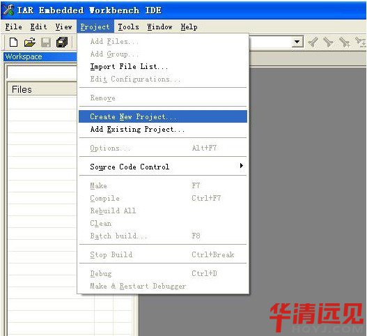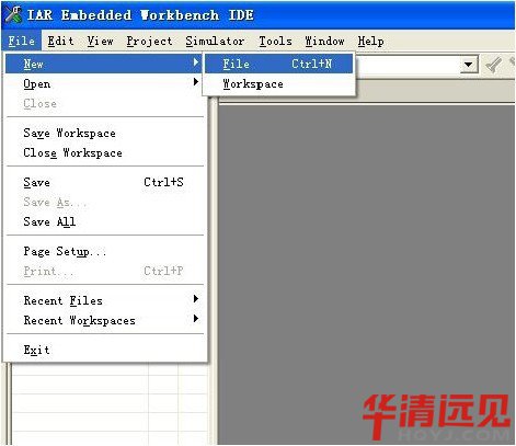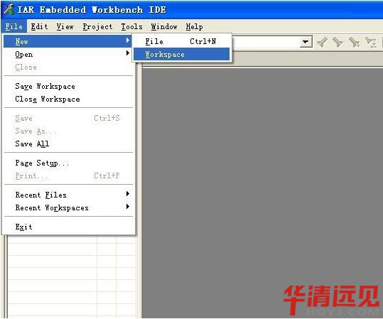 2、在彈出的下面界面中選(xuan)cancel,選(xuan)擇 File\New\Workspace 。現在用戶已(yi)經(jing)建好一個工(gong)作區,可創建新的工(gong)程并把它放入工(gong)作區。 打開已(yi)有的workspace