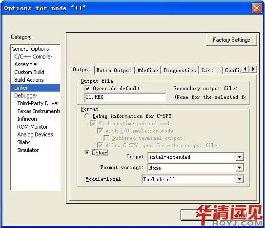 注意:如(ru)果需要(yao)生成.hex 文件供 SmartRF Flash Programmer 燒寫,就需要(yao)在 Format 選(xuan)項勾(gou)選(xuan)" Other"項。如(ru)下(xia)圖所示:
