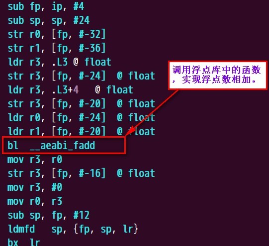 從圖中(zhong)我們可以(yi)知道,默認情況(kuang)下,編譯器使用的是軟浮點(dian),圖中(zhong)__aeabi_fadd這個函數是在浮點(dian)庫中(zhong)實(shi)現。如果想讓代(dai)碼能(neng)正(zheng)常(chang)的運行,還(huan)需要在連(lian)接(jie)的時候靜態連(lian)接(jie)一下浮點(dian)庫。 在這里我們以一(yi)個完成的(de)案(an)例來說(shuo)明一(yi)下,軟浮點庫(ku)的(de)使用方法。 start.S: 使(shi)用硬(ying)件浮點實現(xian)浮點運算(suan)(hard-float) 使用硬件(jian)(jian)浮(fu)點(dian)的(de)時候,我(wo)們需(xu)要給編譯器(qi)傳(chuan)遞一(yi)些參數,讓編譯器(qi)編譯出硬件(jian)(jian)浮(fu)點(dian)單(dan)元(yuan)處理器(qi)能識別(bie)的(de)指令。 (1)-mfpu=name 參數-mfpu就是用來指(zhi)定(ding)要產生那種硬(ying)件浮點(dian)運算指(zhi)令,常(chang)用的右vfp和(he)neon等。 浮點協處理器指令: ARM10 and ARM9: (2) -mfloat-abi=value -mfloat-abi=soft 使(shi)用(yong)(yong)(yong)(yong)這(zhe)個參(can)數(shu)時(shi),其將調用(yong)(yong)(yong)(yong)軟浮(fu)點(dian)庫(softfloat lib)來支持(chi)對浮(fu)點(dian)的運算,GCC編譯器已經(jing)有這(zhe)個庫了,一(yi)(yi)般(ban)(ban)在libgcc里面(mian)。這(zhe)時(shi)根本(ben)不會(hui)使(shi)用(yong)(yong)(yong)(yong)任何浮(fu)點(dian)指(zhi)令,而是采用(yong)(yong)(yong)(yong)常用(yong)(yong)(yong)(yong)的指(zhi)令來模擬浮(fu)點(dian)運算。但使(shi)用(yong)(yong)(yong)(yong)的ARM芯片不支持(chi)硬浮(fu)點(dian)時(shi),可以考慮使(shi)用(yong)(yong)(yong)(yong)這(zhe)個參(can)數(shu)。在使(shi)用(yong)(yong)(yong)(yong)這(zhe)個參(can)數(shu)時(shi),連(lian)接時(shi)一(yi)(yi)般(ban)(ban)會(hui)出現下面(mian)的提(ti)示: undefined reference to `__aeabi_fdiv' 或者類似(si)的提示,主(zhu)要(yao)因為一(yi)般情況下連接器沒有去主(zhu)動尋找軟浮(fu)點(dian)庫,這(zhe)時(shi)使用(yong)將libgcc庫加入即可。 -mfloat-abi=softfp -mfloat-abi=hard 這兩個參數都(dou)用來產生硬浮點(dian)指令(ling)(ling),至于產生哪里類型的(de)硬浮點(dian)指令(ling)(ling),需要(yao)由 -mfpu=xxx參數來指令。這兩個參數不(bu)同(tong)的地(di)方是: -mfloat-abi=softfp生成的(de)代碼(ma)采用(yong)(yong)兼容(rong)軟浮點調用(yong)(yong)接口(即使(shi)用(yong)(yong)-mfloat-abi=soft時的(de)調用(yong)(yong)接口),這樣帶來的(de)好處是:兼容(rong)性和(he)靈活(huo)性。庫可以(yi)(yi)采用(yong)(yong)-mfloat-abi=soft編(bian)譯(yi),而關鍵的(de)應(ying)用(yong)(yong)程(cheng)序可以(yi)(yi)采用(yong)(yong)-mfloat-abi=softfp來編(bian)譯(yi)。特別是在(zai)庫由第三方發布的(de)情況下。 -mfloat-abi=hard生成(cheng)的(de)代碼采用硬(ying)浮點(FPU)調用接口(kou)。這樣要(yao)求所有庫和應(ying)用程序必須采用這同一個參數來編譯,否則連接時會出現接口(kou)不兼容錯誤。 我(wo)們對main.c文件使用硬(ying)件浮點(dian)重(zhong)新編譯: