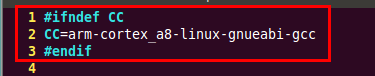 修改第2行中的(de)CC=gcc 為 CC=arm-cortex_a8-linux-gnueabi-gcc,并(bing)且注銷第1行和第3行。如下圖(tu)所示(shi)