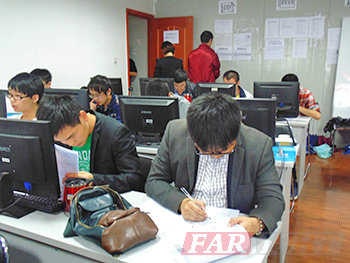 | 圖一(yi)、東華軟件企業負責人(ren)宣(xuan)講中(zhong) | 圖(tu)二(er)、華清遠見的學員們認(ren)真筆試中 |