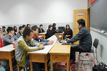 | 圖一、學員提前(qian)到場耐心等待(dai)企業招聘人(ren)員的(de)到來 | 圖二、企業(ye)技術(shu)負責人(ren)李經理進行(xing)企業(ye)宣講(jiang)(1) |