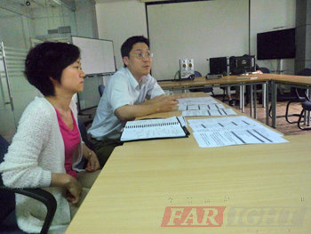 | 圖一、清華大學研究中(zhong)心人(ren)力(li)資源(yuan)經理宋(song)女士和(he)技術主管姜博士 | 圖二、13011期就業班(ban)學(xue)員進(jin)行集體面(mian)試中 |