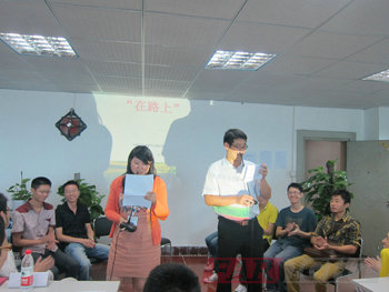 | 圖三(san)、新老學員交流會活(huo)動主持現(xian)場 | 圖四、老學員黃(huang)同學給大家分(fen)享經(jing)驗 |