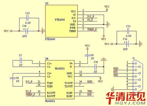 2、 PC端(duan):PTR2000無線數據傳輸模塊;TTL電平(ping)(ping)轉(zhuan)換RS-232電平(ping)(ping)芯片MAX202。