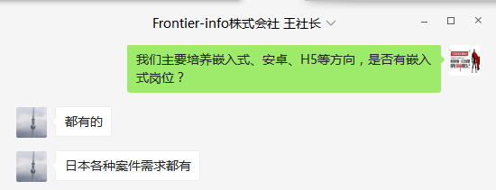 Frontier-info株式會社的王(wang)社長,親自聯系(xi)洽談,通過微信跟華(hua)清老師交流(liu)。