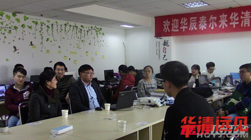 11月30日下(xia)午兩點,山(shan)東華(hua)辰泰(tai)(tai)爾(er)科技(ji)(ji)信息(xi)股份有限公司一行人,包括技(ji)(ji)術部馬經理(li),人事吳經理(li)以及華(hua)清(qing)遠(yuan)(yuan)見(jian)已畢業學(xue)(xue)員并(bing)且目(mu)前也是華(hua)辰泰(tai)(tai)爾(er)技(ji)(ji)術部員工鄭乾(qian)同學(xue)(xue),一塊來到濟南(nan)中心(xin)進行考察參觀(guan)。濟南(nan)中心(xin)校(xiao)長李(li)鵬負責接待并(bing)詳細(xi)介(jie)紹了(le)(le)我們的研發中心(xin)、課程(cheng)設置及項目(mu)展示。通過李(li)校(xiao)長的講解,華(hua)辰泰(tai)(tai)爾(er)負責人更加明白(bai)了(le)(le)華(hua)清(qing)遠(yuan)(yuan)見(jian)的辦學(xue)(xue)宗旨和教學(xue)(xue)標準,堅定了(le)(le)華(hua)辰泰(tai)(tai)爾(er)來華(hua)清(qing)遠(yuan)(yuan)見(jian)人才選拔的決心(xin)。