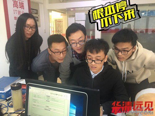偷偷地(di)看,正(zheng)在進行技術面試的(de)學(xue)員們(men)。
