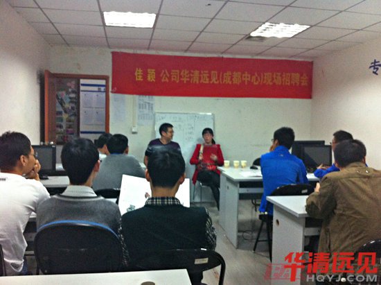 公(gong)司對本次專場(chang)招(zhao)聘很重視,公(gong)司翟總于10月(yue)(yue)10日(ri)(ri)親自到華清遠(yuan)見成(cheng)(cheng)都(dou)(dou)中(zhong)心(xin)(xin)(xin)考(kao)察參觀,與成(cheng)(cheng)都(dou)(dou)中(zhong)心(xin)(xin)(xin)的(de)學(xue)術經理潘老(lao)師(shi)深入的(de)交談,敲定(ding)招(zhao)聘人員的(de)要求。10月(yue)(yue)23日(ri)(ri)專門召(zhao)開公(gong)司招(zhao)聘工作準備會議。10月(yue)(yue)24日(ri)(ri)由公(gong)司郭(guo)副(fu)總帶隊一行三人到成(cheng)(cheng)都(dou)(dou)中(zhong)心(xin)(xin)(xin)舉辦專場(chang)招(zhao)聘會。