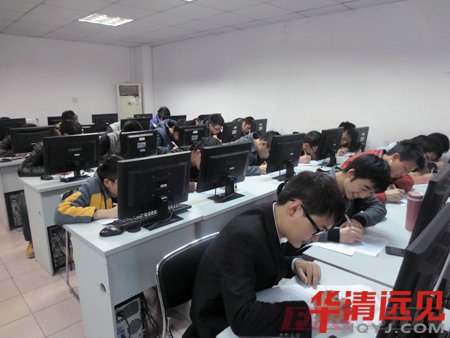 圖二、率先網絡科技(ji)招(zhao)聘會現(xian)場,學(xue)生認真做筆(bi)試題