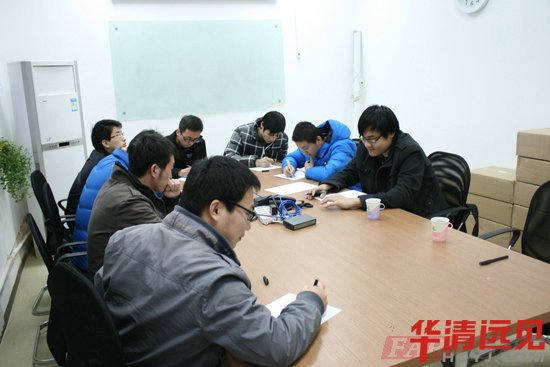 本(ben)次招聘(pin)會(hui)(hui)現場設在華(hua)清(qing)遠見北京總部的(de)(de)(de)(de)會(hui)(hui)議室,參加招聘(pin)的(de)(de)(de)(de)學(xue)員是華(hua)清(qing)遠見本(ben)月畢(bi)業班級的(de)(de)(de)(de)優秀學(xue)員,招聘(pin)會(hui)(hui)采取(qu)的(de)(de)(de)(de)是先(xian)集體筆(bi)試(shi)(shi)后(hou)(hou)技(ji)術(shu)面(mian)試(shi)(shi)的(de)(de)(de)(de)流(liu)程。學(xue)員們帶著(zhu)(zhu)忐忑的(de)(de)(de)(de)心情走進(jin)“考場”,拿到考題之(zhi)后(hou)(hou)奮(fen)筆(bi)疾書(shu),絲毫(hao)沒有被考題難倒;筆(bi)試(shi)(shi)結束之(zhi)后(hou)(hou)進(jin)行(xing)一對一技(ji)術(shu)面(mian)試(shi)(shi),由于當(dang)天(tian)時間(jian)較(jiao)晚,陳(chen)渝教授預計每位同(tong)(tong)學(xue)只進(jin)行(xing)簡單面(mian)試(shi)(shi)五分鐘即可,之(zhi)后(hou)(hou)可再約時間(jian)詳談,但真(zhen)正面(mian)試(shi)(shi)開始(shi)之(zhi)后(hou)(hou),第一位同(tong)(tong)學(xue)進(jin)入會(hui)(hui)議室二十多分鐘之(zhi)后(hou)(hou)才帶著(zhu)(zhu)自信(xin)的(de)(de)(de)(de)微笑(xiao)離(li)開,之(zhi)后(hou)(hou),每位同(tong)(tong)學(xue)的(de)(de)(de)(de)面(mian)試(shi)(shi)都超出預計時間(jian),所以本(ben)應在五點半結束的(de)(de)(de)(de)招聘(pin)會(hui)(hui)一直持續到晚上(shang)七點才畫上(shang)圓(yuan)滿的(de)(de)(de)(de)句號。