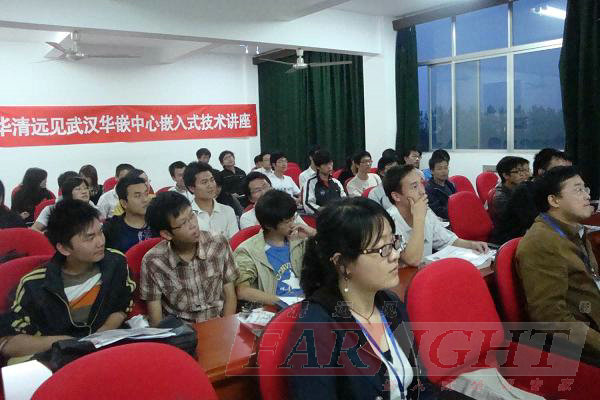 2009年5月(yue)26日,華清遠見武漢華嵌中心應湖北工業大學電氣學院邀請,在該校舉行了一場關于嵌入式課題的技術講座。與會者不僅有大三、大四的電氣學院的學生,還有碩士研究生,整個多媒體教室座無虛席,講座過程中,同學們與講座老師積極互動,主動向老師請教嵌入式技術方面和職場心得,講座得到了該校師生的一致好評,課堂氛圍極其熱烈,本次講座取得了圓滿的成功!