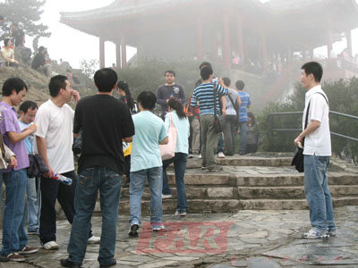9:15分終于到了香山腳下,看到己經到達的學員們。感覺就像終于找到組織啦!我們在停車場打開“華清遠見教育科技集團”條幅,好讓其他學員看到我們人群中的一點紅。當每一次331路車到達的時候,我們都在打賭車上有幾個學員,大家期盼的,我們隊伍不斷的狀大。