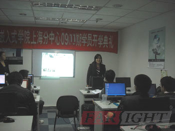 2009年(nian)12月11日,華(hua)清遠見教(jiao)育科技集團上海(hai)中心0911期(qi)開(kai)(kai)學典(dian)(dian)禮在上海(hai)華(hua)清遠見第三教(jiao)室(shi)隆(long)重(zhong)舉行,華(hua)清遠見上海(hai)中心任繼梅校長、康華(hua)老師(shi)、張(zhang)宇斌老師(shi)及班(ban)主(zhu)任王(wang)丹(dan)丹(dan)老師(shi)均出席了此次(ci)開(kai)(kai)學典(dian)(dian)禮。整個開(kai)(kai)學典(dian)(dian)禮由班(ban)主(zhu)任老師(shi)王(wang)丹(dan)丹(dan)主(zhu)持。