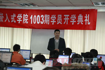 緊接著由華清遠見(jian)教育科技(ji)集團院長季老師(shi)(shi)(shi)為(wei)開學(xue)典禮(li)致辭,季老師(shi)(shi)(shi)對(dui)(dui)嵌(qian)入(ru)式(shi)(shi)行(xing)(xing)業的(de)前(qian)景及與企業合作的(de)單位授權等都進(jin)行(xing)(xing)了的(de)介紹,特別針對(dui)(dui)2010年的(de)十(shi)大新興技(ji)術與嵌(qian)入(ru)式(shi)(shi)研發(fa)的(de)密切(qie)相關性進(jin)行(xing)(xing)了分(fen)析,也會目前(qian)大家普遍關注的(de)物聯網、云計算等技(ji)術及應(ying)用(yong)領域進(jin)行(xing)(xing)了剖析,讓同學(xue)們(men)看到了更(geng)多嵌(qian)入(ru)式(shi)(shi)行(xing)(xing)業的(de)蓬勃發(fa)展(zhan),人才需求(qiu)如火(huo)如荼的(de)現狀(zhuang)。并且季老師(shi)(shi)(shi)也鼓勵新學(xue)員要努力學(xue)習(xi),調整自己的(de)心態,充分(fen)利用(yong)這四個月(yue)的(de)時(shi)間(jian),將(jiang)自己塑造(zao)成一名合格(ge)的(de)嵌(qian)入(ru)式(shi)(shi)工程師(shi)(shi)(shi)。