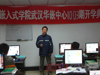 首(shou)先由(you)武(wu)漢華(hua)嵌(qian)中心(xin)負責(ze)人(ren)李(li)家凱老(lao)師為(wei)開(kai)學(xue)(xue)(xue)(xue)典禮(li)致辭,李(li)老(lao)師首(shou)先向學(xue)(xue)(xue)(xue)員(yuan)們(men)(men)介紹(shao)了嵌(qian)入(ru)式(shi)行業(ye)的(de)(de)(de)(de)前景、學(xue)(xue)(xue)(xue)員(yuan)就業(ye)前景以(yi)及與(yu)眾多企業(ye)合作的(de)(de)(de)(de)單(dan)位做(zuo)了簡單(dan)的(de)(de)(de)(de)介紹(shao),并講解了華(hua)清遠見的(de)(de)(de)(de)發(fa)展(zhan)歷(li)程(cheng)(cheng)和武(wu)漢華(hua)嵌(qian)中心(xin)成立的(de)(de)(de)(de)過程(cheng)(cheng),同(tong)時(shi)對(dui)本(ben)期(qi)的(de)(de)(de)(de)課(ke)程(cheng)(cheng)體(ti)系設置、授課(ke)安排(pai)的(de)(de)(de)(de)情(qing)況做(zuo)了詳細的(de)(de)(de)(de)介紹(shao),并要(yao)(yao)求(qiu)每位學(xue)(xue)(xue)(xue)員(yuan)都做(zuo)好(hao)課(ke)前預(yu)習和課(ke)后復習,要(yao)(yao)養成良(liang)好(hao)的(de)(de)(de)(de)學(xue)(xue)(xue)(xue)習習慣,勤動手(shou)做(zuo)筆記。接著,李(li)老(lao)師照常談了自(zi)己對(dui)學(xue)(xue)(xue)(xue)員(yuan)們(men)(men)的(de)(de)(de)(de)幾(ji)點期(qi)望,并鼓勵新學(xue)(xue)(xue)(xue)員(yuan)努力學(xue)(xue)(xue)(xue)習,早日成為(wei)一名合格的(de)(de)(de)(de)嵌(qian)入(ru)式(shi)高(gao)級(ji)人(ren)才。后,李(li)老(lao)師強調了學(xue)(xue)(xue)(xue)習紀律的(de)(de)(de)(de)問題,要(yao)(yao)求(qiu)各位學(xue)(xue)(xue)(xue)員(yuan)要(yao)(yao)端(duan)正(zheng)學(xue)(xue)(xue)(xue)習態度,遵守規章(zhang)制度,把握(wo)好(hao)今天。