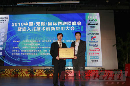 2010年4月20日(ri),物(wu)聯網(wang)峰會(hui)暨嵌(qian)(qian)入(ru)式(shi)技(ji)術創新(xin)應(ying)用大會(hui)在(zai)(zai)無錫太(tai)湖飯店隆(long)重舉行。本屆大會(hui)是在(zai)(zai)工業(ye)和(he)(he)(he)信息(xi)化(hua)部(bu)科技(ji)司、電子信息(xi)司、軟件服(fu)務業(ye)司、信息(xi)化(hua)推進司的(de)(de)指導下(xia),在(zai)(zai)無錫市人(ren)民政府(fu)的(de)(de)大力(li)支持下(xia),由工業(ye)和(he)(he)(he)信息(xi)化(hua)部(bu)軟件與集成電路(lu)促(cu)進中心(CSIP)、無錫市濱湖區人(ren)民政府(fu)聯合(he)主辦的(de)(de)專(zhuan)(zhuan)業(ye)盛會(hui),外相關(guan)(guan)知名企業(ye)悉數到場,共同圍(wei)繞新(xin)興的(de)(de)物(wu)聯網(wang)產業(ye),探(tan)討應(ying)用市場和(he)(he)(he)技(ji)術挑戰,展望嵌(qian)(qian)入(ru)式(shi)技(ji)術在(zai)(zai)物(wu)聯網(wang)中的(de)(de)應(ying)用前景,著力(li)推動嵌(qian)(qian)入(ru)式(shi)等(deng)與物(wu)聯網(wang)有關(guan)(guan)的(de)(de)各(ge)項技(ji)術和(he)(he)(he)方案在(zai)(zai)各(ge)行各(ge)業(ye)的(de)(de)應(ying)用。華(hua)清遠見作為嵌(qian)(qian)入(ru)式(shi)人(ren)才(cai)培養(yang)和(he)(he)(he)人(ren)才(cai)服(fu)務的(de)(de)旗艦品牌,在(zai)(zai)本次大會(hui)上榮獲(huo)(huo)“嵌(qian)(qian)入(ru)式(shi)人(ren)才(cai)服(fu)務特別獎”,成為唯一獲(huo)(huo)得此殊榮的(de)(de)專(zhuan)(zhuan)業(ye)培訓機構! 同時,由CSIP組織(zhi)業(ye)內專家評審團選出(chu)的(de)“2010十大優秀(xiu)嵌(qian)入式(shi)系統創新(xin)解決方案(an)(an)”也(ye)在大會當天對外公(gong)布,上(shang)海(hai)慶科(ke)信(xin)息技術有(you)限(xian)(xian)公(gong)司、盛科(ke)網絡(luo)(luo)(蘇州(zhou))有(you)限(xian)(xian)公(gong)司、威盛電(dian)子(zi)、ADI、深圳(zhen)市(shi)愛國者嵌(qian)入式(shi)系統科(ke)技有(you)限(xian)(xian)公(gong)司等(deng)10家公(gong)司的(de)方案(an)(an)獲獎,方案(an)(an)覆蓋物聯網、網絡(luo)(luo)通信(xin)、智(zhi)能電(dian)網、汽車電(dian)子(zi)、醫療電(dian)子(zi)、移動終端、數字電(dian)視、安防領域,展示出(chu)芯片設計廠商(shang)、方案(an)(an)廠商(shang)以及整機廠商(shang)在應用創新(xin)上(shang)的(de)豐碩(shuo)成果。