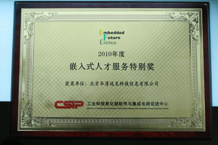據主辦(ban)方CSIP透露(lu),舉辦(ban)此次評選活動的(de)目的(de)是(shi)(shi)為(wei)(wei)了激(ji)發嵌入(ru)(ru)(ru)式(shi)應(ying)用領(ling)域的(de)創新精神,發掘外(wai)新具(ju)代表性的(de)嵌入(ru)(ru)(ru)式(shi)技(ji)術及應(ying)用解決方案(an),促進(jin)(jin)嵌入(ru)(ru)(ru)式(shi)技(ji)術在各(ge)行(xing)各(ge)業(ye)的(de)廣泛應(ying)用,推進(jin)(jin)兩化融合(he)、3C融合(he)、傳統(tong)產業(ye)升級的(de)發展(zhan)(zhan)進(jin)(jin)程(cheng)(cheng)。而(er)作為(wei)(wei)產業(ye)發展(zhan)(zhan)根本要素的(de)人(ren)才培(pei)(pei)養,在本次大會上(shang)更是(shi)(shi)受到了各(ge)位專(zhuan)家和主管行(xing)業(ye)的(de)特(te)(te)別關注。大會專(zhuan)家評審團將特(te)(te)別設立的(de)“嵌入(ru)(ru)(ru)式(shi)人(ren)才服(fu)務特(te)(te)別獎”頒發給華(hua)清(qing)遠(yuan)(yuan)(yuan)見的(de)理(li)由是(shi)(shi):作為(wei)(wei)早(zao)從事嵌入(ru)(ru)(ru)式(shi)高(gao)端培(pei)(pei)訓(xun)(xun)的(de)專(zhuan)業(ye)機(ji)構,華(hua)清(qing)遠(yuan)(yuan)(yuan)見憑借(jie)其敏銳的(de)洞察力和卓越的(de)市(shi)場(chang)前(qian)瞻性,始終緊跟行(xing)業(ye)發展(zhan)(zhan)趨勢(shi)和企業(ye)需求,借(jie)助與ARM、微軟、Atmel、Intel等企業(ye)卓有(you)成效的(de)合(he)作,從2005年(nian)開始,華(hua)清(qing)遠(yuan)(yuan)(yuan)見平均每(mei)年(nian)源源不斷地向嵌入(ru)(ru)(ru)式(shi)行(xing)業(ye)輸(shu)送2000多名優秀工程(cheng)(cheng)師,連續5年(nian)市(shi)場(chang)份額遙(yao)遙(yao)。至(zhi)2009年(nian)底,華(hua)清(qing)遠(yuan)(yuan)(yuan)見累積培(pei)(pei)訓(xun)(xun)學員人(ren)數已超(chao)過一萬兩千名,為(wei)(wei)嵌入(ru)(ru)(ru)式(shi)行(xing)業(ye)健康快速發展(zhan)(zhan)提供(gong)了強有(you)力的(de)保障。