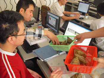 6月13日,上(shang)海中(zhong)心的(de)(de)(de)老師們一早就開始為(wei)學(xue)員熱粽子,發粽子。學(xue)員們吃著各種風味(wei)香噴噴的(de)(de)(de)粽子討論著有(you)關(guan)端午節的(de)(de)(de)活動、習俗,還有(you)端午節的(de)(de)(de)來歷(li),以及(ji)屈(qu)原的(de)(de)(de)的(de)(de)(de)故事等(deng)等(deng),所有(you)的(de)(de)(de)這些(xie)在濃濃粽香中(zhong)飄動。。。。。。