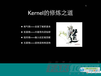 2010年5月,由華(hua)清(qing)遠見教(jiao)材研(yan)發(fa)中(zhong)心(xin)策劃,華(hua)清(qing)遠見嵌入式(shi)(shi)培(pei)訓中(zhong)心(xin)資深講師(shi)任老師(shi)編寫(xie)、人(ren)民郵電出版(ban)社(she)出版(ban)發(fa)行的《Linux內核修煉之道》一書在隆(long)重上(shang)市(shi)。該(gai)書一經問世立刻(ke)受到業(ye)內朋(peng)友的強力(li)推(tui)薦。而此前該(gai)書的部分章節內容已經通過相關(guan)(guan)的博客在CSDN、51CTO、ChinaUnix等專業(ye)技(ji)術網站中(zhong)陸續發(fa)布,這些技(ji)術文章一經發(fa)布即獲得了業(ye)內嵌入式(shi)(shi)Linux內核技(ji)術愛(ai)好(hao)者的普(pu)遍關(guan)(guan)注(zhu),并引發(fa)了網友的熱議。