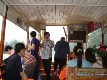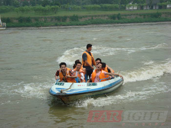 下午,從碼頭出發(fa),我(wo)(wo)(wo)(wo)們(men)(men)開始了(le)(le)一(yi)段愜意與(yu)刺激并具的(de)(de)(de)(de)旅程。大(da)家先(xian)是(shi)(shi)坐上(shang)客船(chuan),在(zai)兩岸(an)(an)綠蔭濃(nong)密(mi)的(de)(de)(de)(de)河(he)道中乘風而行,貌(mao)似有(you)蘇東(dong)坡(po)的(de)(de)(de)(de)“清(qing)風徐來,水(shui)波(bo)不(bu)興”的(de)(de)(de)(de)點點意境,使(shi)得(de)大(da)家興奮不(bu)已,按捺(na)不(bu)住地離(li)開坐位與(yu)清(qing)風、水(shui)波(bo),做親(qin)密(mi)的(de)(de)(de)(de)接觸,印下這(zhe)大(da)自然的(de)(de)(de)(de)恩賜,大(da)家對它留(liu)戀(lian)之極,但(dan)還由不(bu)得(de)我(wo)(wo)(wo)(wo)們(men)(men)盡(jin)情,船(chuan)就(jiu)(jiu)(jiu)靠岸(an)(an)了(le)(le)。岸(an)(an)上(shang)的(de)(de)(de)(de)金佛寺(si)就(jiu)(jiu)(jiu)是(shi)(shi)我(wo)(wo)(wo)(wo)們(men)(men)的(de)(de)(de)(de)目(mu)的(de)(de)(de)(de)地,走過一(yi)段盤山公路,我(wo)(wo)(wo)(wo)們(men)(men)就(jiu)(jiu)(jiu)聽到了(le)(le)寺(si)廟傳(chuan)來念佛經(jing)的(de)(de)(de)(de)聲(sheng)音(yin),原來我(wo)(wo)(wo)(wo)們(men)(men)已經(jing)踏(ta)入(ru)了(le)(le)這(zhe)佛門靜地。寺(si)廟不(bu)是(shi)(shi)很大(da),但(dan)卻有(you)一(yi)尊很大(da)很大(da)的(de)(de)(de)(de)佛像,帶著祈福的(de)(de)(de)(de)心,靜靜地參觀完(wan)寺(si)廟完(wan)后(hou),我(wo)(wo)(wo)(wo)們(men)(men)踏(ta)上(shang)了(le)(le)返鎮的(de)(de)(de)(de)客船(chuan)。回到碼頭,我(wo)(wo)(wo)(wo)們(men)(men)開始瞄準了(le)(le)一(yi)項驚險(xian)刺激的(de)(de)(de)(de)項目(mu)——坐快艇(ting)(ting)!在(zai)來之前就(jiu)(jiu)(jiu)有(you)聽一(yi)位老師(shi)說(shuo)過要玩過隱的(de)(de)(de)(de)項目(mu),就(jiu)(jiu)(jiu)非它莫屬了(le)(le),果不(bu)其然,快艇(ting)(ting)上(shang)時(shi)時(shi)傳(chuan)來的(de)(de)(de)(de)一(yi)陣陣尖叫(jiao)聲(sheng),咱們(men)(men)的(de)(de)(de)(de)學員也按捺(na)不(bu)住,穿好安全服(fu)上(shang)了(le)(le)快艇(ting)(ting)。急速行駛中的(de)(de)(de)(de)快艇(ting)(ting)表演讓(rang)艇(ting)(ting)上(shang)的(de)(de)(de)(de)人前俯后(hou)仰,左晃右蕩,驚魂未定,也讓(rang)岸(an)(an)上(shang)的(de)(de)(de)(de)觀眾同樣緊(jin)張兮兮,叫(jiao)聲(sheng)不(bu)斷,笑聲(sheng)不(bu)停,一(yi)點兒沒閑……