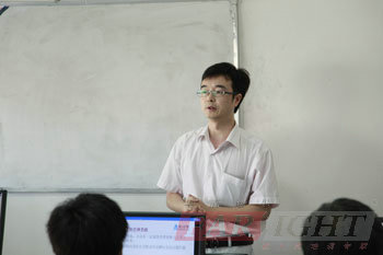 | 圖三、就業主管裴老師詳細講解學院就業服務 | 圖四、班主任王老師主持開學典禮 |
