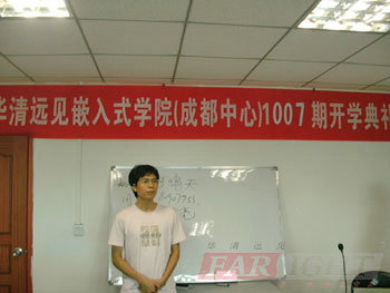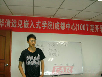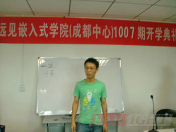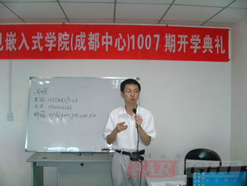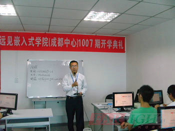 在1004期畢業典禮之后,2010年8月2日(ri),華清遠(yuan)見成都中(zhong)(zhong)心再次迎來了(le)1007期嵌(qian)入式軟件就業班(ban)的(de)(de)開班(ban)典禮(li)。典禮(li)現場(chang)邀請到(dao)了(le)成都中(zhong)(zhong)心的(de)(de)校長陶金華老(lao)(lao)師、授課(ke)王老(lao)(lao)師及課(ke)程(cheng)咨詢劉老(lao)(lao)師等到(dao)場(chang),活動(dong)共(gong)持續兩(liang)個多小時。儀式現場(chang)各位老(lao)(lao)師用心的(de)(de)交流和分(fen)享,讓(rang)1007期的(de)(de)新學(xue)(xue)員,對選擇嵌(qian)入式,選擇華清遠(yuan)見的(de)(de)學(xue)(xue)習(xi)有了(le)更充(chong)分(fen)的(de)(de)信心和動(dong)力;而在學(xue)(xue)員互動(dong)環節(jie),則(ze)讓(rang)學(xue)(xue)員彼此間有了(le)更進一(yi)步(bu)的(de)(de)了(le)解,為他們接下來共(gong)同(tong)經歷的(de)(de)四(si)個月同(tong)窗(chuang)生(sheng)活打下了(le)良(liang)好基礎(chu);后,班(ban)主任老(lao)(lao)師還就學(xue)(xue)習(xi)過程(cheng)中(zhong)(zhong)的(de)(de)一(yi)些(xie)管理細(xi)則(ze)給大家(jia)作了(le)一(yi)一(yi)的(de)(de)介紹,良(liang)好的(de)(de)紀律意(yi)識傳遞(di)給了(le)這(zhe)個集體。