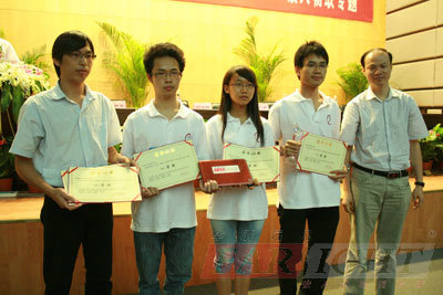 張文(wen)濤老(lao)師為“博創杯”電子(zi)大賽獲獎的同學頒獎