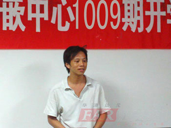 2010年(nian)9月22日,華(hua)清遠(yuan)見(jian)武(wu)漢中(zhong)心(xin)1009期開(kai)(kai)學(xue)典(dian)禮在武(wu)漢中(zhong)心(xin)2號(hao)教室隆(long)重(zhong)舉行,華(hua)清遠(yuan)見(jian)武(wu)漢中(zhong)心(xin)的負責人,授課老師(shi)代表(biao)、技術支持(chi)老師(shi)、就業指導老師(shi)以及班主任(ren)參加(jia)了此(ci)次開(kai)(kai)學(xue)典(dian)禮。