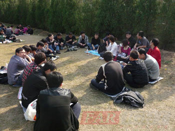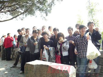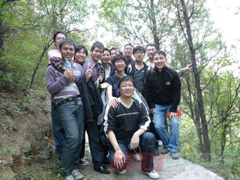 走(zou)著(zhu)(zhu)走(zou)著(zhu)(zhu),在(zai)經過一個陡(dou)坡之(zhi)后(hou),我們(men)(men)終(zhong)于(yu)看到望(wang)(wang)兒(er)臺(tai)。傳說楊六郎與遼兵曾在(zai)山(shan)下大戰(zhan),佘太君登(deng)山(shan)觀(guan)戰(zhan)為(wei)六郎助威,因此(ci)又叫(jiao)“望(wang)(wang)兒(er)山(shan)”。在(zai)“望(wang)(wang)兒(er)臺(tai)”佘老太君的(de)塑像(xiang)前(qian)瞻仰時(shi)(shi),我們(men)(men)竟突然產生了一種濃郁(yu)的(de)思(si)鄉(xiang)之(zhi)情——盡(jin)管經常在(zai)外面(mian)時(shi)(shi)時(shi)(shi)電話問候(hou)他(ta)們(men)(men),但是秋天來(lai)了,天氣(qi)漸冷,不知道家鄉(xiang)的(de)父母現在(zai)一切還(huan)好嗎? 同(tong)(tong)(tong)學們(men)(men)簇擁在(zai)望(wang)(wang)京樓上,眺望(wang)(wang)著(zhu)(zhu)北京,感(gan)受滿山(shan)的(de)綠(lv)意。這時(shi)(shi)李(li)守業同(tong)(tong)(tong)學提議(yi)大家一起吃(chi)柚(you)子(zi)。一聽有柚(you)子(zi)可吃(chi),同(tong)(tong)(tong)學們(men)(men)的(de)傷感(gan)情懷立刻煙消云(yun)散,開始焦(jiao)急等待守業同(tong)(tong)(tong)學分柚(you)子(zi)。經過一番努力,同(tong)(tong)(tong)學們(men)(men)圍在(zai)一起開心(xin)地品嘗(chang)著(zhu)(zhu)這一絲清香,一絲甘甜。