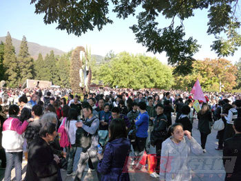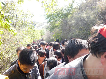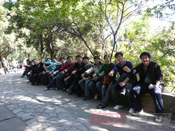 上(shang)午10時,大家(jia)相約(yue)在(zai)香山(shan)東(dong)門(men)的(de)售票處集合。或(huo)許是(shi)因為天氣(qi)格外晴(qing)朗的(de)原(yuan)因,似乎感覺北(bei)京全市的(de)人(ren)們都行動起來去看紅葉了。人(ren)真是(shi)格外得(de)多(duo),車當然更是(shi)出奇的(de)堵(du),許多(duo)同學都是(shi)從(cong)早上(shang)7點出門(men)才到達(da)香山(shan),甚至有(you)同學是(shi)從(cong)很遠的(de)地方就開始下車步(bu)行,才得(de)以達(da)到香山(shan)東(dong)門(men)處。