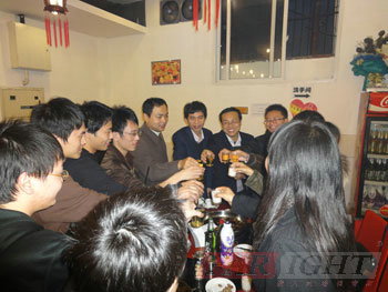 | 圖五、老師點評 | 圖六、舉杯祝福 |