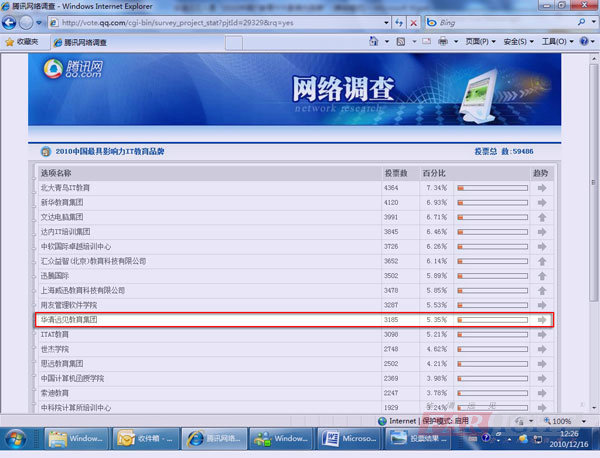 本(ben)次(ci)(ci)騰訊(xun)網教(jiao)育頻道(dao)“2010回響教(jiao)育年度總(zong)評榜(bang)”入圍(wei)名單的(de)終產生,是在2010.11.15-2010.12.05長達(da)1個(ge)多月的(de)時間內,由廣大的(de)網友投(tou)票而上榜(bang),在整個(ge)活動(dong)舉(ju)辦過程中(zhong),主辦方對(dui)整個(ge)投(tou)票的(de)過程進行了(le)嚴格的(de)監督,而這(zhe)種方式也(ye)更加(jia)凸顯出本(ben)次(ci)(ci)評選活動(dong)的(de)公(gong)正性,華(hua)清遠見終以3185票,占總(zong)票數的(de)5.35%而上榜(bang)。