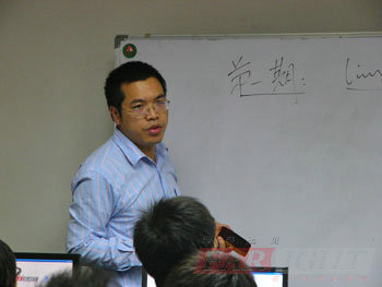 | 圖一、深圳中心校長梁老師介紹嵌入式以及華清的相關情況 | 圖二、教學總監易老師為學員介紹課程體系 |