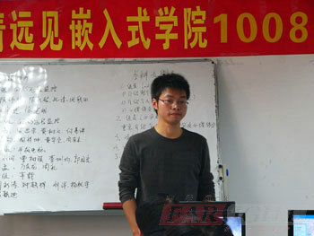在項(xiang)目(mu)(mu)答(da)辯正式開始之前,曹老師(shi)(shi)(shi)首先(xian)簡單(dan)的(de)介紹(shao)了(le)參(can)加答(da)辯的(de)各位(wei)評委老師(shi)(shi)(shi),之后曹老師(shi)(shi)(shi)向學員(yuan)們詳細(xi)說明了(le)項(xiang)目(mu)(mu)答(da)辯的(de)流(liu)程和具(ju)(ju)體要求,并公布了(le)學員(yuan)答(da)辯的(de)先(xian)后順序。在介紹(shao)完相關項(xiang)目(mu)(mu)答(da)辯的(de)具(ju)(ju)體安排之后,由(you)1008期第一個項(xiang)目(mu)(mu)組《基于(yu)GPRS的(de)遠程監控系統》的(de)小組組長陳(chen)瑋煒拉(la)開了(le)答(da)辯的(de)序幕。