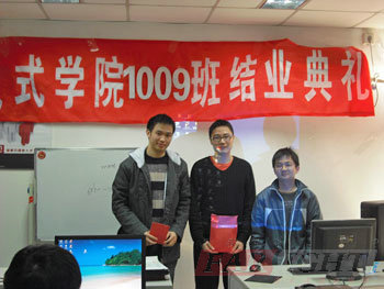 2010年12月31日,華清遠見教育科技集(ji)團上海中心(xin)1009期學(xue)員在中心(xin)第二教室成功舉(ju)辦(ban)了畢業(ye)典禮。參加此次畢業(ye)典禮的有(you)1009班全(quan)體(ti)學(xue)員、上海中心(xin)專業(ye)老(lao)(lao)師(shi)李(li)老(lao)(lao)師(shi)、康(kang)老(lao)(lao)師(shi)、王老(lao)(lao)師(shi)和就(jiu)業(ye)指(zhi)導閆老(lao)(lao)師(shi)。