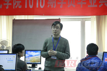 | 圖三、班主任王老師主持1010期畢業典禮 | 圖四、就業指導老師裴老師介紹面試注意事項 |