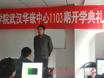 首先由華清遠(yuan)(yuan)見武漢中(zhong)心(xin)負責人李(li)(li)家凱老(lao)師(shi)為開學(xue)典禮致辭。李(li)(li)老(lao)師(shi)向學(xue)員(yuan)(yuan)們(men)介(jie)紹(shao)(shao)了(le)嵌入式行(xing)業(ye)的(de)前景、學(xue)員(yuan)(yuan)就(jiu)業(ye)情況(kuang)以及眾多就(jiu)業(ye)合作企業(ye),對當前的(de)關注熱點“物聯網”、“云計(ji)算”、“3G”等概(gai)念(nian)進(jin)行(xing)了(le)簡單的(de)介(jie)紹(shao)(shao),讓大家充分感受到嵌入式行(xing)業(ye)的(de)優勢。李(li)(li)老(lao)師(shi)還講解了(le)華清遠(yuan)(yuan)見的(de)發展歷(li)程和(he)(he)華清遠(yuan)(yuan)見武漢中(zhong)心(xin)成(cheng)(cheng)立、成(cheng)(cheng)長的(de)歷(li)程,同時對本期的(de)課程體系設置(zhi)、授課安排做(zuo)了(le)詳細的(de)介(jie)紹(shao)(shao),并要求每(mei)位(wei)學(xue)員(yuan)(yuan)都做(zuo)好(hao)(hao)課前預習(xi)和(he)(he)課后復習(xi),要養成(cheng)(cheng)良好(hao)(hao)的(de)學(xue)習(xi)習(xi)慣(guan),勤動手(shou)做(zuo)筆記。李(li)(li)老(lao)師(shi)后常談了(le)自己對學(xue)員(yuan)(yuan)們(men)的(de)幾(ji)點期望,并鼓勵(li)新(xin)學(xue)員(yuan)(yuan)努力(li)學(xue)習(xi),早日(ri)成(cheng)(cheng)為一名合格的(de)嵌入式高級人才。