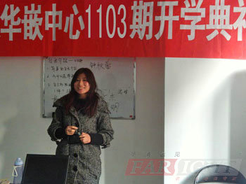 2011年3月21日,華(hua)清(qing)遠(yuan)見(jian)武(wu)漢中心(xin)1103期開學典禮在中心(xin)2號(hao)教室成功(gong)舉行,參加本次開學典禮的有華(hua)清(qing)遠(yuan)見(jian)武(wu)漢中心(xin)負(fu)責人李(li)(li)家(jia)凱老(lao)(lao)師、就業指導胡老(lao)(lao)師、班主任徐(xu)老(lao)(lao)師、技術支持涂老(lao)(lao)師、市場(chang)部李(li)(li)老(lao)(lao)師等,大家(jia)相聚在此,開始了嵌入式學習的一個新(xin)的旅途(tu)。