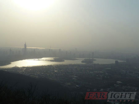 終(zhong)于(yu)(yu)功夫不負(fu)有(you)(you)心人(ren),我們來(lai)到紫金山(shan)(shan)(shan)山(shan)(shan)(shan)頂。紫金山(shan)(shan)(shan)沒(mei)有(you)(you)北方(fang)高山(shan)(shan)(shan)的(de)(de)(de)巍峨挺拔(ba),也沒(mei)有(you)(you)南方(fang)群峰的(de)(de)(de)溫柔靈(ling)秀,但卻(que)有(you)(you)著一份屬(shu)于(yu)(yu)她(ta)自(zi)己的(de)(de)(de)從容與淡(dan)泊。站(zhan)在紫金山(shan)(shan)(shan)頂,不僅讓(rang)我們享受著燦爛的(de)(de)(de)陽光和清新(xin)的(de)(de)(de)空氣(qi),更(geng)有(you)(you)一種(zhong)讓(rang)人(ren)精神松弛的(de)(de)(de)散淡(dan)氣(qi)息。即使是我們這(zhe)些匆匆的(de)(de)(de)行(xing)旅者,在這(zhe)樣的(de)(de)(de)氛圍中都(dou)不覺隨意(yi)、輕松起來(lai)。在這(zhe)樣的(de)(de)(de)情境(jing)下,任何人(ren)繁(fan)雜的(de)(de)(de)思緒(xu)都(dou)會不自(zi)覺地平靜下來(lai)。在山(shan)(shan)(shan)頂向下望(wang)去有(you)(you)“一覽(lan)眾山(shan)(shan)(shan)小”的(de)(de)(de)感覺。