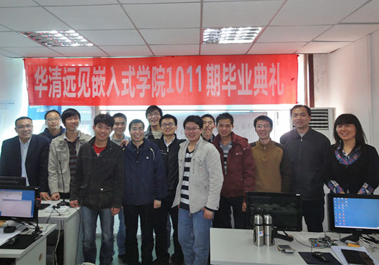 2011年4月2日華清遠(yuan)見成都中心(xin)在嵌入式(shi)實驗教室一,特別(bie)舉辦了1011期畢(bi)業(ye)(ye)典(dian)禮,借(jie)助(zhu)以此(ci)特殊(shu)的儀式(shi),慶祝同學(xue)們在華清遠(yuan)見圓滿完(wan)成學(xue)業(ye)(ye),并學(xue)有(you)所成,同時預祝同學(xue)們畢(bi)業(ye)(ye)后在嵌入式(shi)行(xing)業(ye)(ye)工作(zuo)中一切順(shun)利。