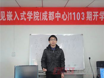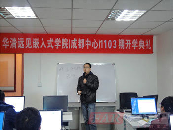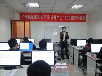 結束十天(tian)的基礎補(bu)習,經過清(qing)明假期的短(duan)暫休整后,2011年4月6日華清(qing)遠見教(jiao)育科技集(ji)團成都中(zhong)心1103期就(jiu)業班正式開班,并于當天(tian)上午九點,在成都中(zhong)心嵌入式實(shi)驗室(shi)二隆重舉行(xing)了開學典(dian)禮(li)。