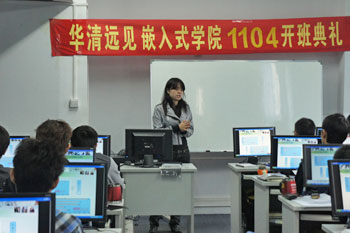 2011年4月6日(ri)早上9:00整,華(hua)清遠(yuan)見深圳中心1104期的(de)(de)(de)(de)開(kai)班典(dian)禮(li)正式開(kai)始了(le)(le),由班主任曹老(lao)師(shi)主持。首先,曹老(lao)師(shi)代表(biao)(biao)華(hua)清遠(yuan)見的(de)(de)(de)(de)全體老(lao)師(shi)祝(zhu)賀1104期順利開(kai)班,并(bing)對學員過去一個(ge)星期的(de)(de)(de)(de)預科表(biao)(biao)現,表(biao)(biao)示(shi)滿意,特別(bie)贊揚了(le)(le)學員的(de)(de)(de)(de)的(de)(de)(de)(de)學習積極性和熱情,希望學員們保持這個(ge)積極性和熱情,堅持到(dao)后取得優異(yi)的(de)(de)(de)(de)成績。接著,曹老(lao)師(shi)介紹了(le)(le)參(can)加這次典(dian)禮(li)的(de)(de)(de)(de)嘉賓,包括華(hua)清遠(yuan)見深圳中心的(de)(de)(de)(de)校長梁老(lao)師(shi),資深講師(shi)譚老(lao)師(shi),就業指導老(lao)師(shi)齊老(lao)師(shi),并(bing)請(qing)上梁老(lao)師(shi)為開(kai)班典(dian)禮(li)致辭。