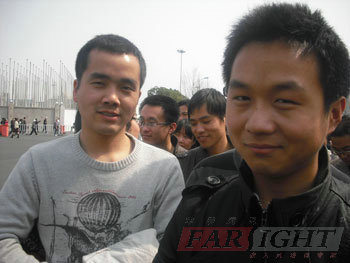 | 圖一、入口處部分學員合影 | 圖二、排隊等候中 |
