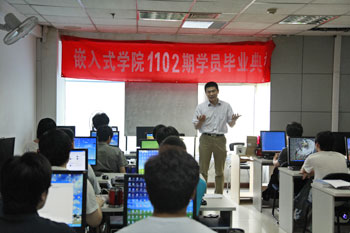 在(zai)(zai)結業典禮前,班主任(ren)老(lao)師組織幾(ji)位(wei)學員談了一(yi)下(xia)(xia)四(si)個月(yue)的(de)感(gan)受。當聽到(dao)肖(xiao)文(wen)峰同學講到(dao)初(chu)的(de)毅(yi)然(ran)決(jue)然(ran)選擇嵌入(ru)式(shi)行業的(de)決(jue)心,以(yi)及在(zai)(zai)過(guo)程(cheng)中(zhong)產(chan)生過(guo)孤獨迷茫(mang),到(dao)后(hou)無悔的(de)選擇。讓(rang)我們(men)心中(zhong)泛起(qi)一(yi)陣陣酸意(yi),在(zai)(zai)這(zhe)里(li)我代表自己(ji)感(gan)謝(xie)學員,能夠從(cong)初(chu)迷茫(mang)堅持到(dao)后(hou)并成功結業。謝(xie)謝(xie)你們(men)!四(si)個月(yue)以(yi)來大(da)家的(de)表現,讓(rang)我們(men)刮(gua)目(mu)相看(kan),每個周(zhou)末都(dou)能夠看(kan)到(dao)一(yi)半的(de)同學在(zai)(zai)這(zhe)里(li)奮斗,在(zai)(zai)這(zhe)里(li)討論實驗,在(zai)(zai)這(zhe)里(li)交流學習方法。雖然(ran)過(guo)程(cheng)中(zhong)有些同學猶(you)豫過(guo),也(ye)有曾經遇到(dao)過(guo)困(kun)難(nan),但終在(zai)(zai)自己(ji)的(de)努力(li),同學的(de)鼓勵支持下(xia)(xia),終都(dou)以(yi)優秀的(de)成績全部都(dou)通過(guo)項(xiang)目(mu)答辯,可以(yi)肯定我們(men)的(de)在(zai)(zai)座的(de)每位(wei)學員都(dou)是棒的(de)!