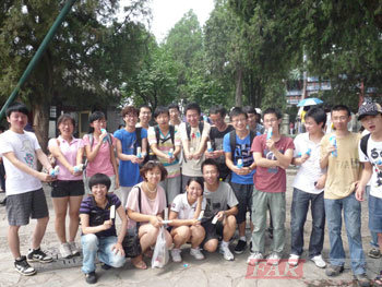 7月16日,華清遠見教育科(ke)技集團1104期全體學(xue)員(yuan),相約在(zai)頤和園正(zheng)門的(de)(de)售票處集合。在(zai)前(qian)一天放學(xue)前(qian),我(wo)(wo)們(men)(men)相約對(dui)于遲到(dao)的(de)(de)學(xue)員(yuan)請大家(jia)吃雪(xue)糕。這是一個美麗(li)的(de)(de)創意!在(zai)早晨8:10的(de)(de)時候,就看(kan)到(dao)有(you)的(de)(de)同(tong)學(xue)已經來(lai)(lai)到(dao)這里(li),在(zai)翹(qiao)首企盼中(zhong)同(tong)學(xue)們(men)(men)在(zai)9點前(qian)都各(ge)就各(ge)位(wei)(wei)了,但仍有(you)四位(wei)(wei)同(tong)學(xue)遲到(dao)。同(tong)學(xue)們(men)(men)非常興(xing)奮看(kan)著這幾(ji)位(wei)(wei)同(tong)學(xue)的(de)(de)到(dao)來(lai)(lai),笑在(zai)嘴邊甜(tian)在(zai)心里(li)——因為我(wo)(wo)們(men)(men)有(you)雪(xue)糕吃了!呵(he)呵(he)! 9:10分(fen),我(wo)(wo)們(men)(men)出發(fa)在(zai)頤和園正(zheng)門合影,露出開心的(de)(de)笑容。大隊出發(fa),前(qian)進(jin),天氣很好,心情很好。