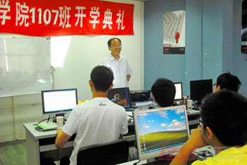 2011年7月25日上午9:30華清遠(yuan)見教(jiao)育科技集團上海(hai)分中心教(jiao)室(shi)里傳來(lai)了師(shi)生(sheng)們(men)的(de)歡聲(sheng)笑語(yu),炎(yan)炎(yan)夏(xia)日阻擋不住學員們(men)的(de)學習熱情,此時,1107班開學典禮儀式在上海(hai)銀海(hai)大廈A座406教(jiao)室(shi)隆(long)重舉行。